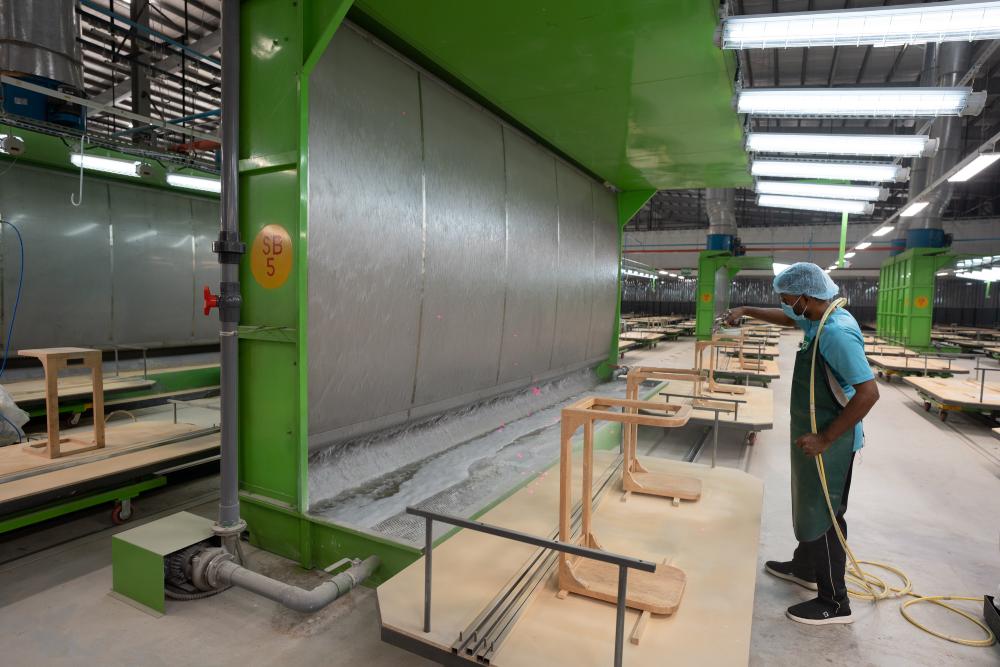 The factory’s modern manufacturing landscape stands as an indication of technological advancement. Automated processes, including a kiln dry unit, sophisticated woodworking machinery, 6-axis CNC machines, automated veneer plants, robotic finishing lines, and a climatically controlled finished goods store, underscore our commitment to precision and quality. Notably, our factory’s scope extends beyond modern creations, embracing the revival of traditional local Cane and Rattan Furniture, fostering rural employment and catering to overseas demand.